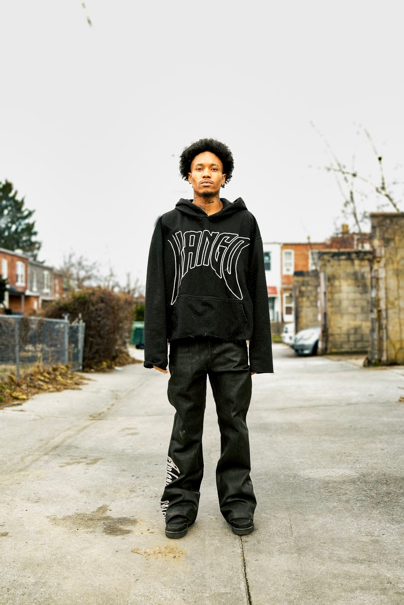 Black Wax Denim with Hand-Set White Gems